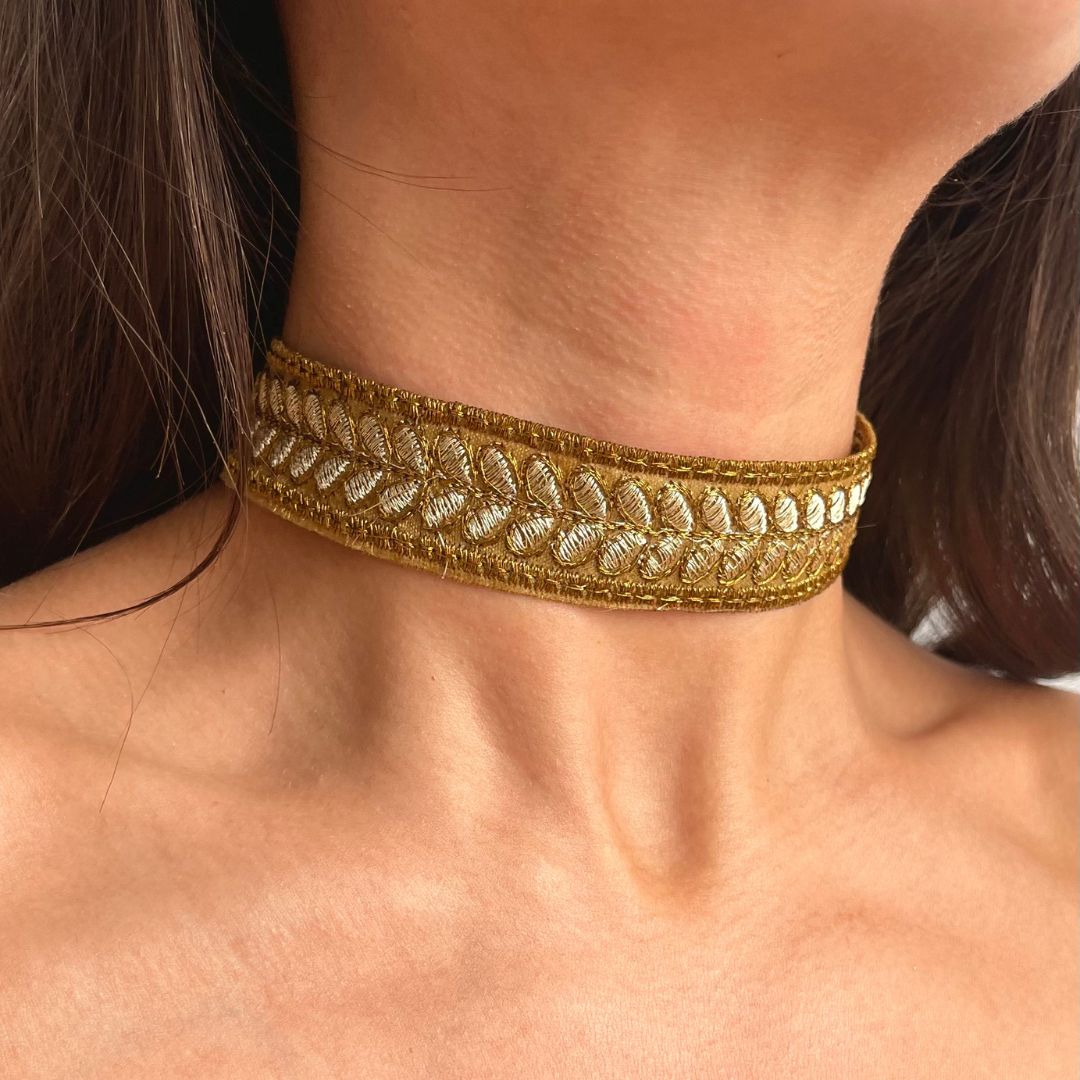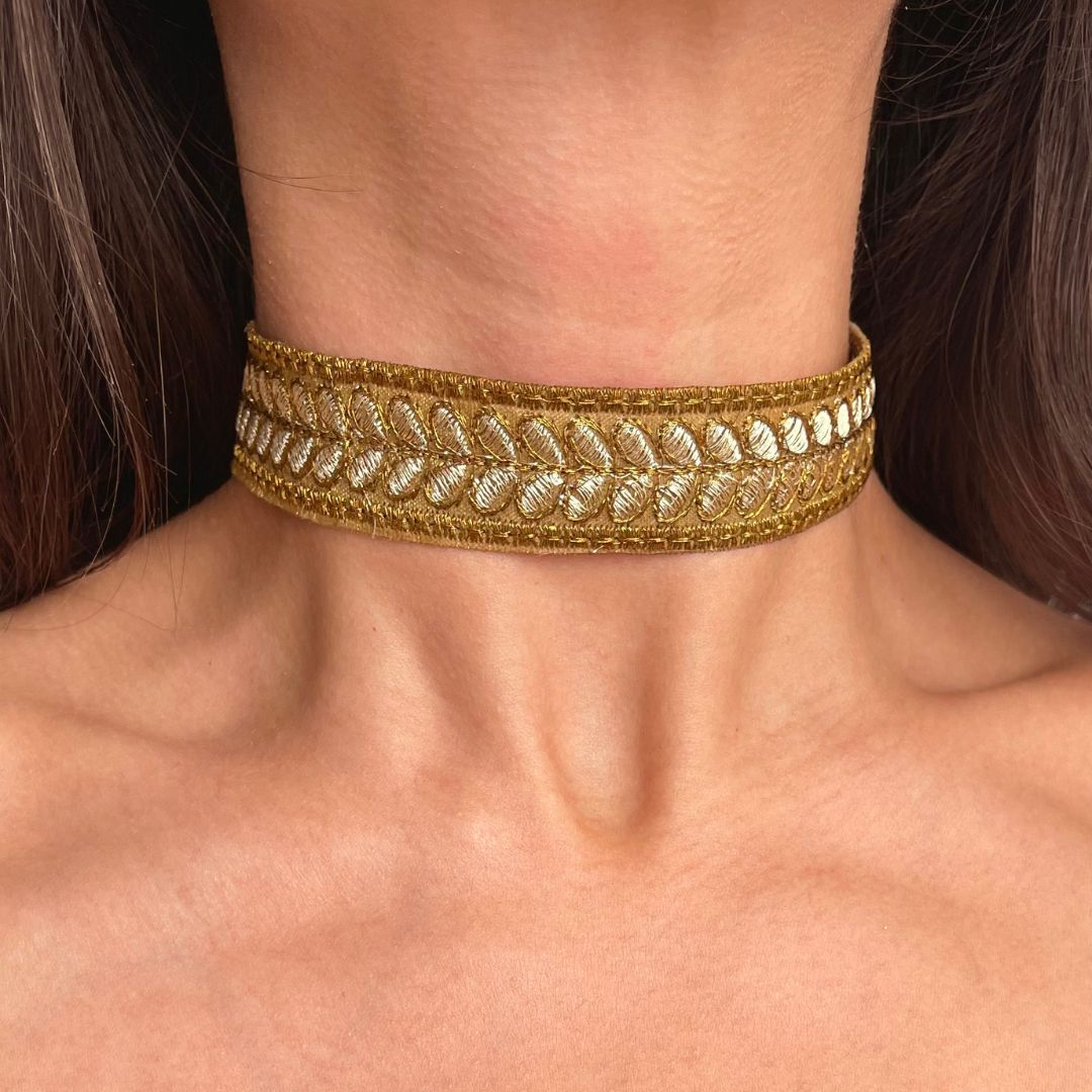 A Gargantilha Espiga é uma peça que combina um design intemporal e elegância. Feita à mão com uma fita têxtil com delicados bordados em espinha de peixe, é um acessório versátil que se adapta a qualquer ocasião, desde eventos especiais a looks do dia-a-dia. Graças à sua corrente ajustável e fecho lagosta, a Gargantilha Espinha de Peixe ajusta-se confortavelmente ao pescoço, acrescentando um toque sofisticado e exclusivo. O seu design artesanal torna-a uma joia única, ideal para mulheres que valorizam os detalhes e o artesanato.
